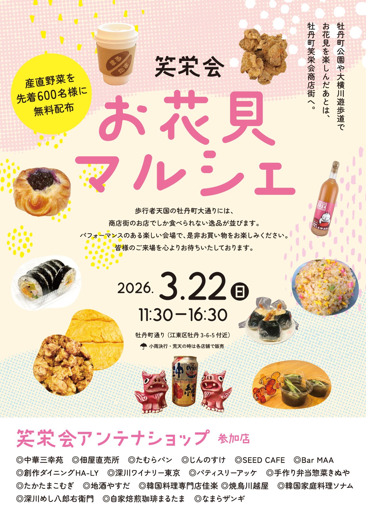 歩行者天国の牡丹町大通りには、商店街のお店でしか食べられない逸品が並びます。