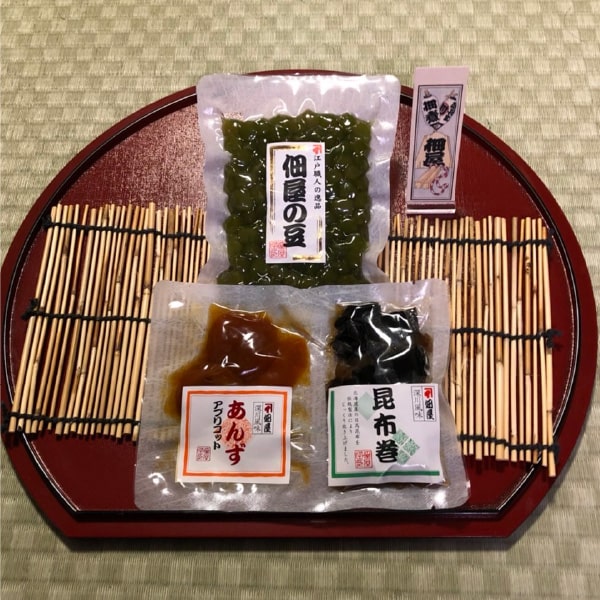 うぐいす豆・昆布巻・あんずのセット。お正月にも使えます。
